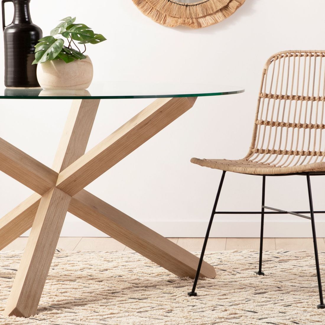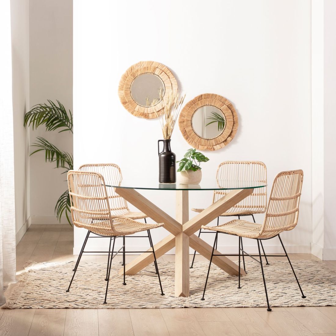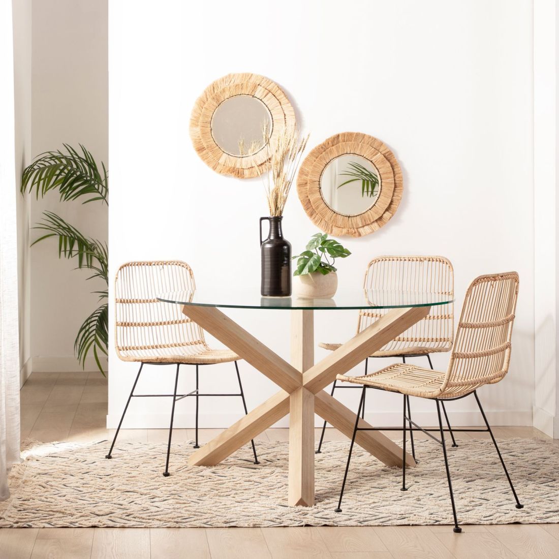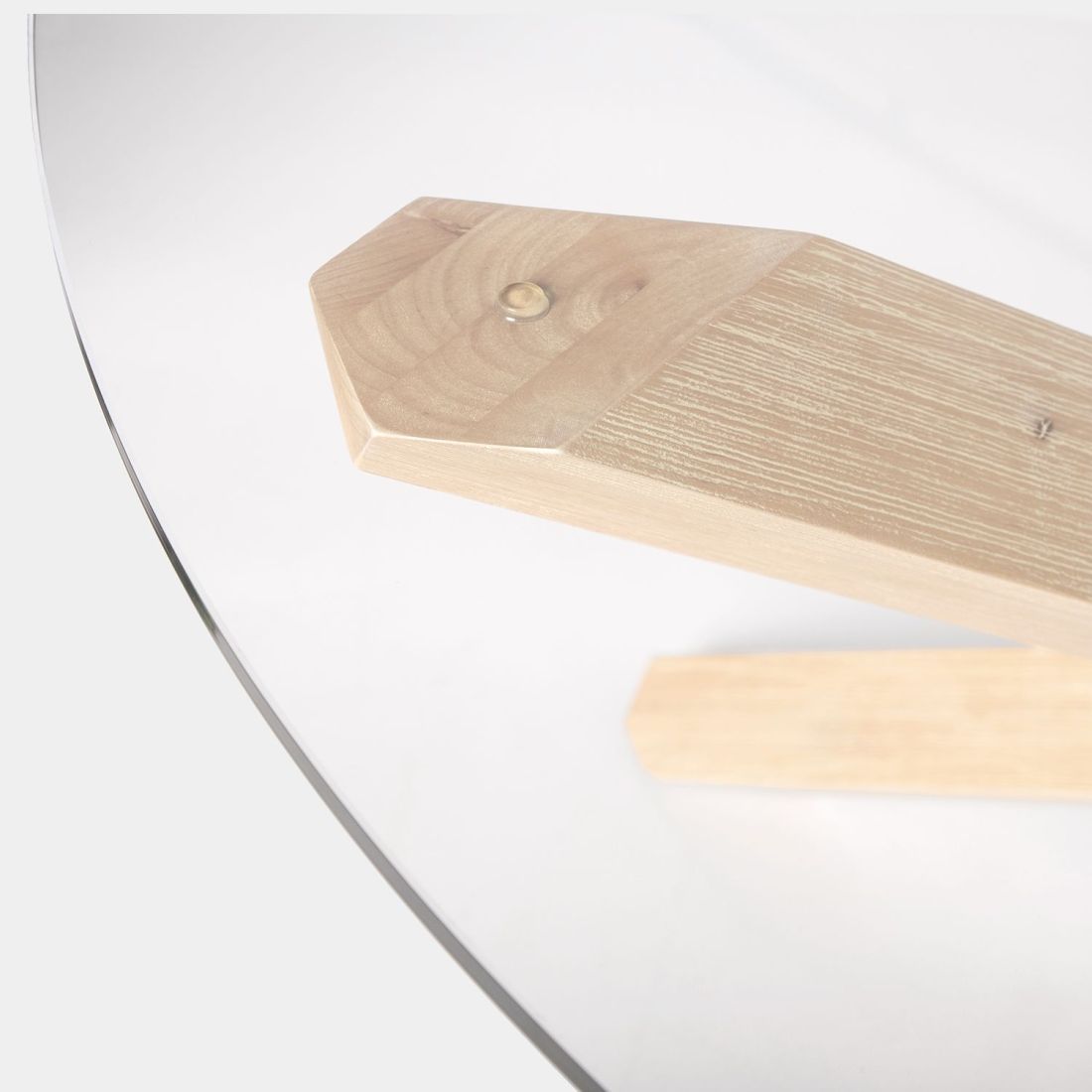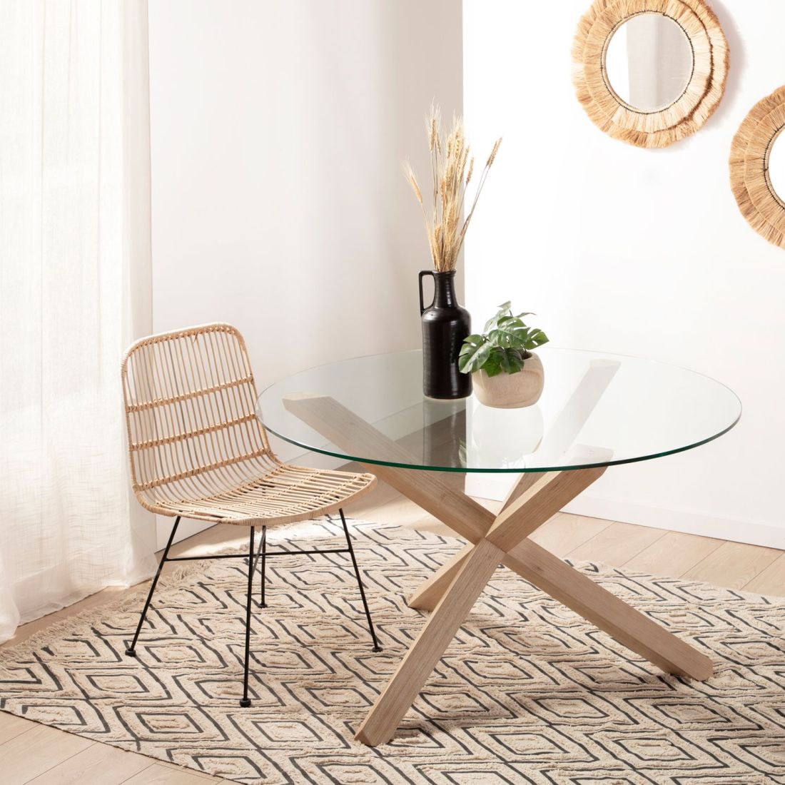Mesa de comedor redonda Ø120 en cristal y madera Isak